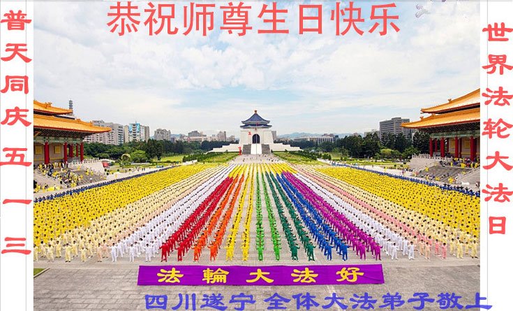 四川遂寧全體大法弟子恭祝師尊生日快樂!暨法輪大法日!