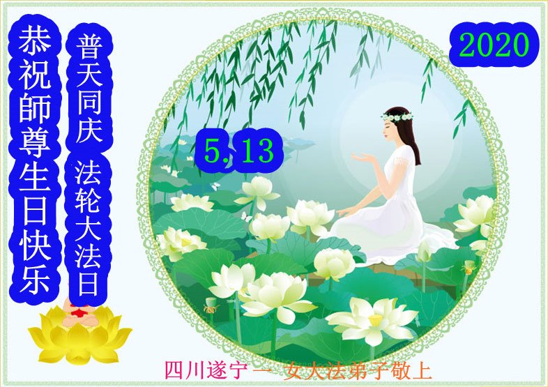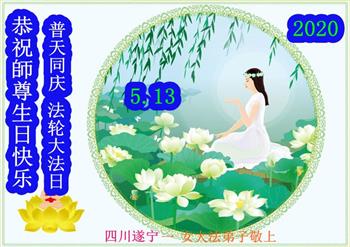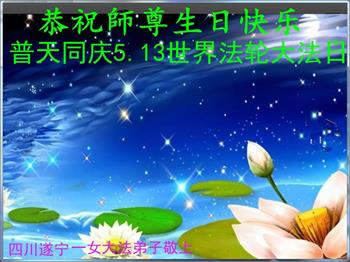 四川遂寧一女大法弟子恭祝師尊生日快樂!暨世界法輪大法日!