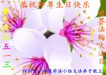 四川遂寧淨蓮學法小組大法弟子恭祝師尊生日快樂!暨世界法輪大法日!