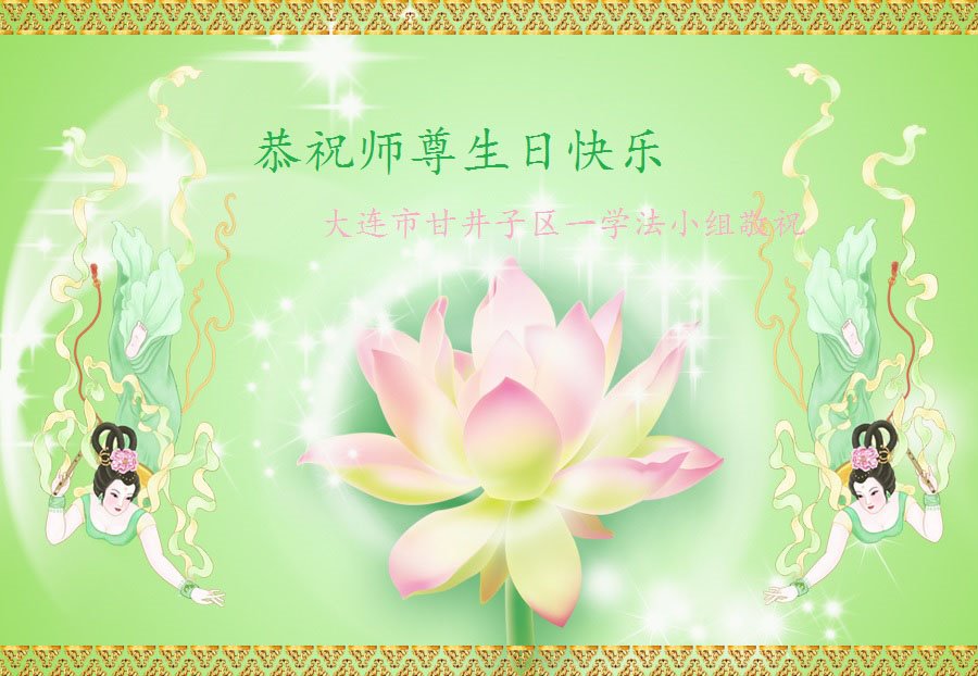 遼寧省大連市甘井子區一學法小組大法弟子恭祝師尊生日快樂!恭賀世界法輪大法日!