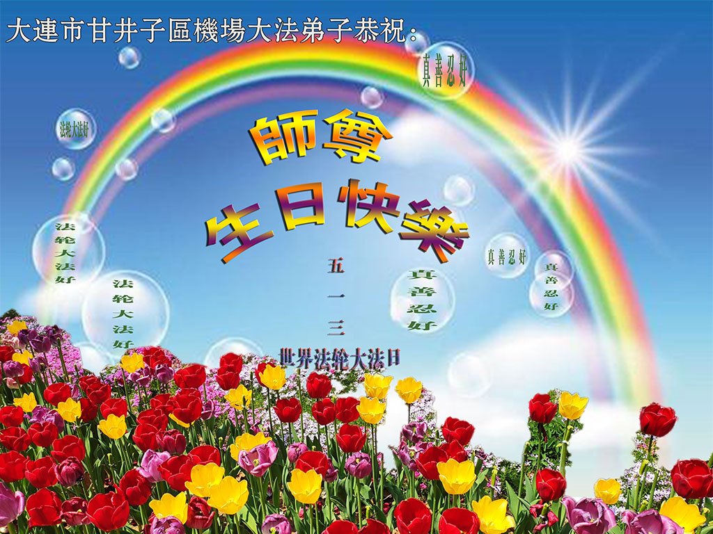 遼寧省大連市甘井子區機場大法弟子恭祝師尊生日快樂!