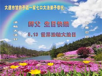 遼寧省大連市大法弟子一家三口及遠在外地的母親恭祝慈悲偉大的師尊華誕暨世界法輪大法日!
