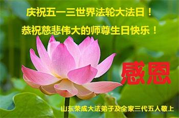 山東省榮成市大法弟子及全家三代五人叩拜師尊