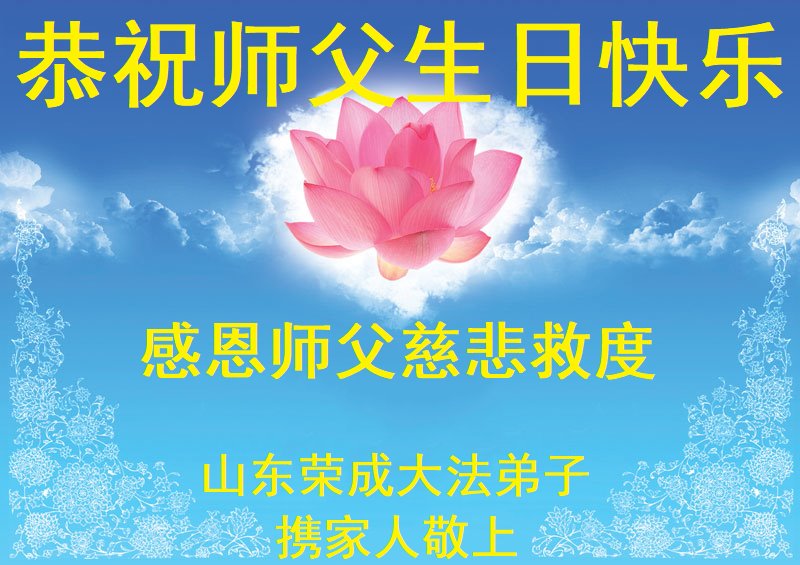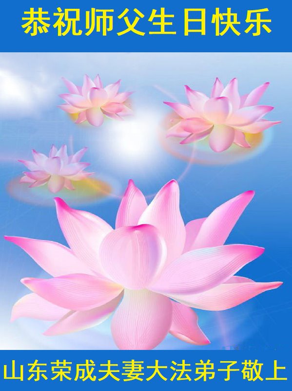 在這神聖的日子裏,我們全家人恭祝師父生日快樂!我們家沒修煉的家人,都做了三退,都在慈悲偉大的師父保護下受益多多。請師父放心:我一定聽師父的話,努力做好三件事,勇猛精進,圓滿隨師還。