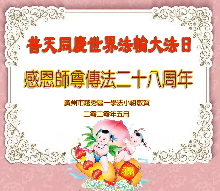 廣東省廣州市一學法小組大法弟子恭祝法輪大法洪傳二十八週年!