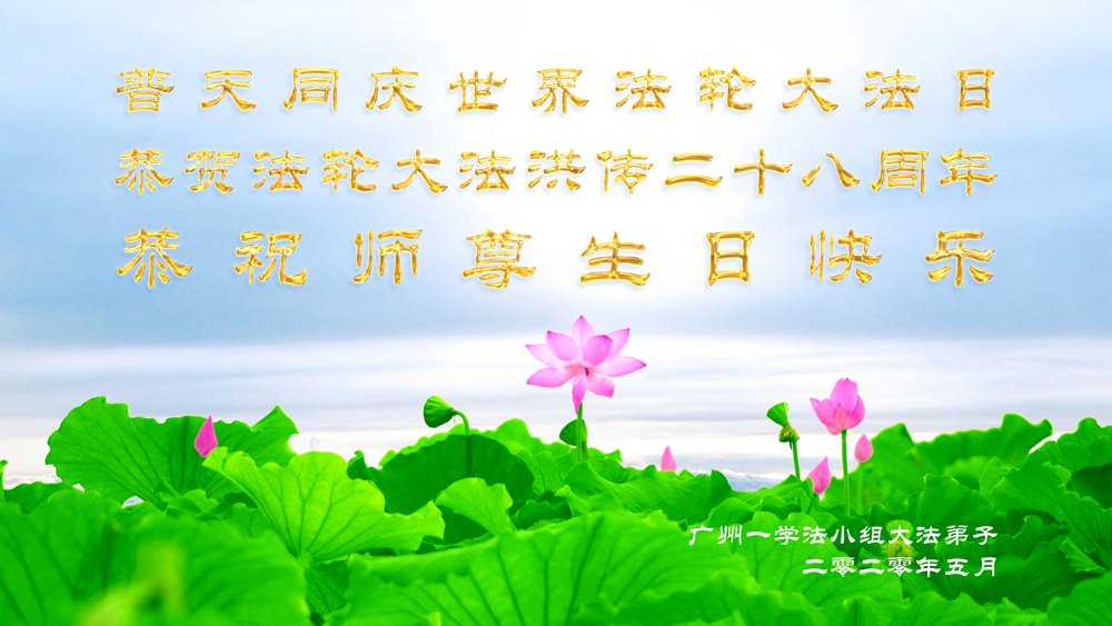 廣東廣州大法弟子恭祝師尊生日快樂!慶祝法輪大法洪傳二十八週年!感謝師尊慈悲救度!