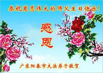 值此師父生日到來之際,我們江南一學法點全體大法弟子恭祝師父生日快樂!請師尊放心我們弟子一定按師尊的教誨學法實修,做好三件事,不辜負師尊的慈悲苦度!