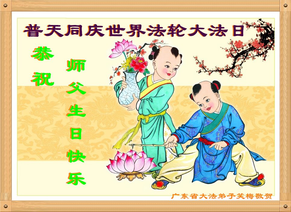廣東揭陽市倆姐妹大法弟子恭祝慈悲偉大的師尊生日快樂!恭賀世界法輪大法日!