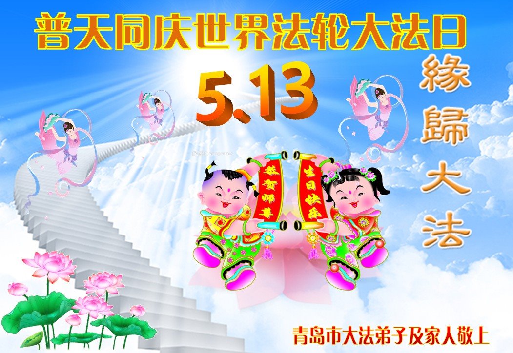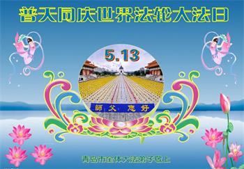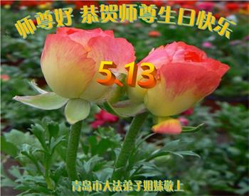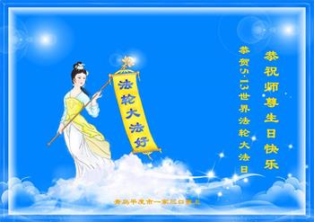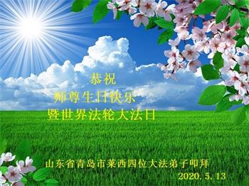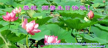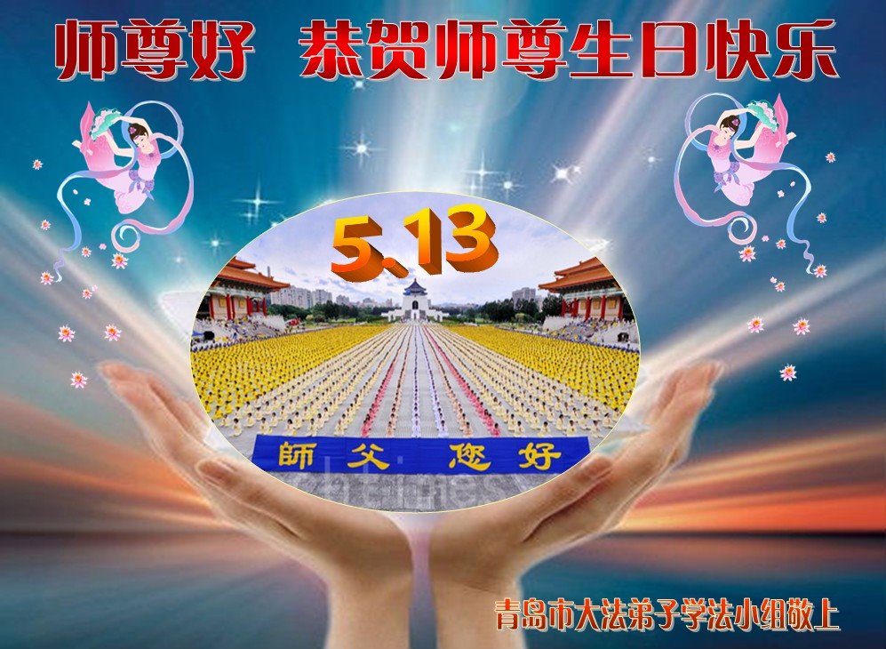 值此師尊壽誕暨世界法輪大法日來臨之際,大陸山東省膠州市大法弟子家庭向慈悲偉大的師尊問好!