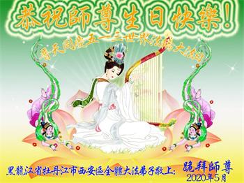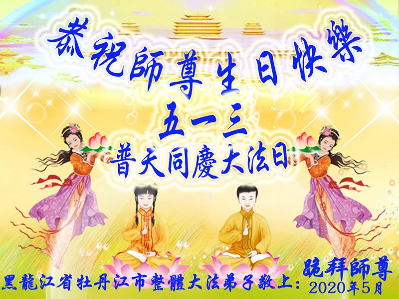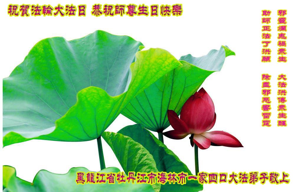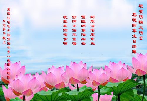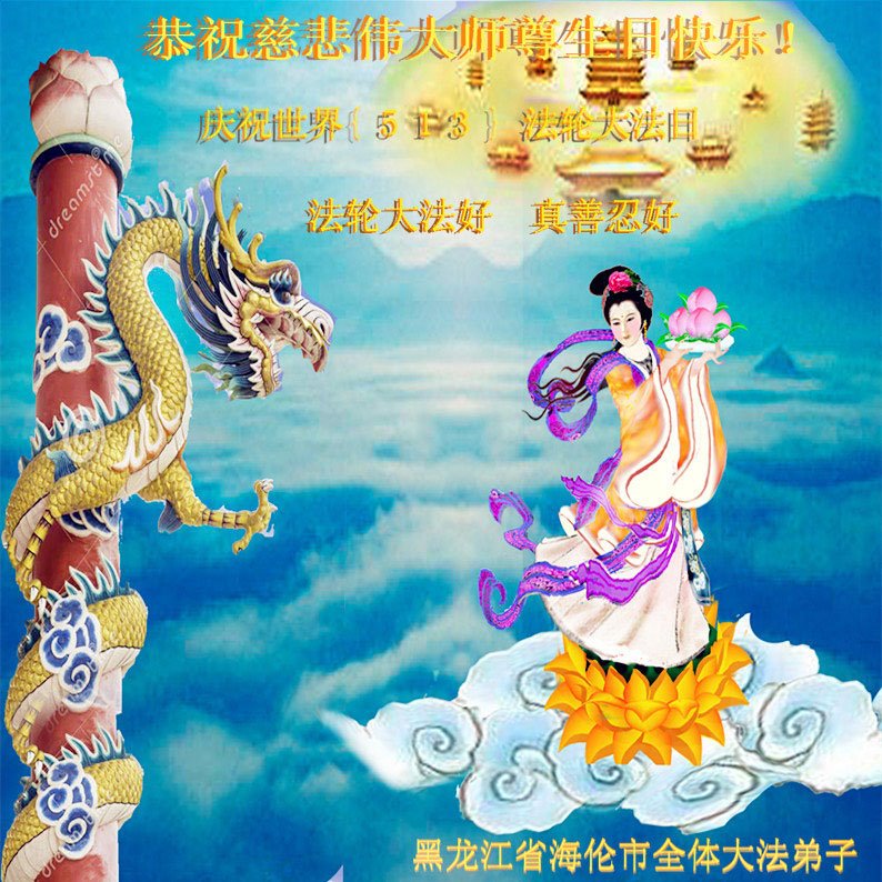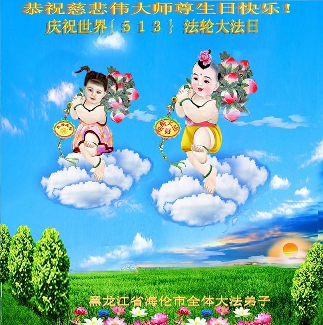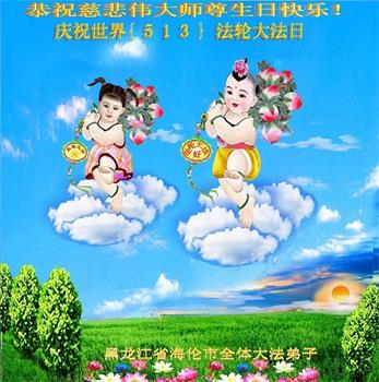 黑龍江省海倫市全體大法弟子恭祝師尊華誕!普天同慶世界法輪大法日!師尊您辛苦了!弟子們想念您!弟子叩謝師恩!