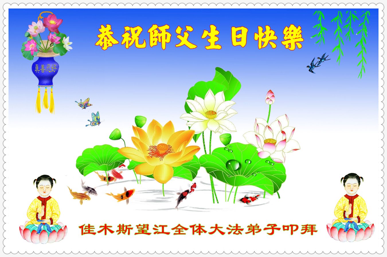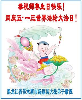 黑龍江佳木斯望江鎮全體大法弟子恭祝師父生日快樂!