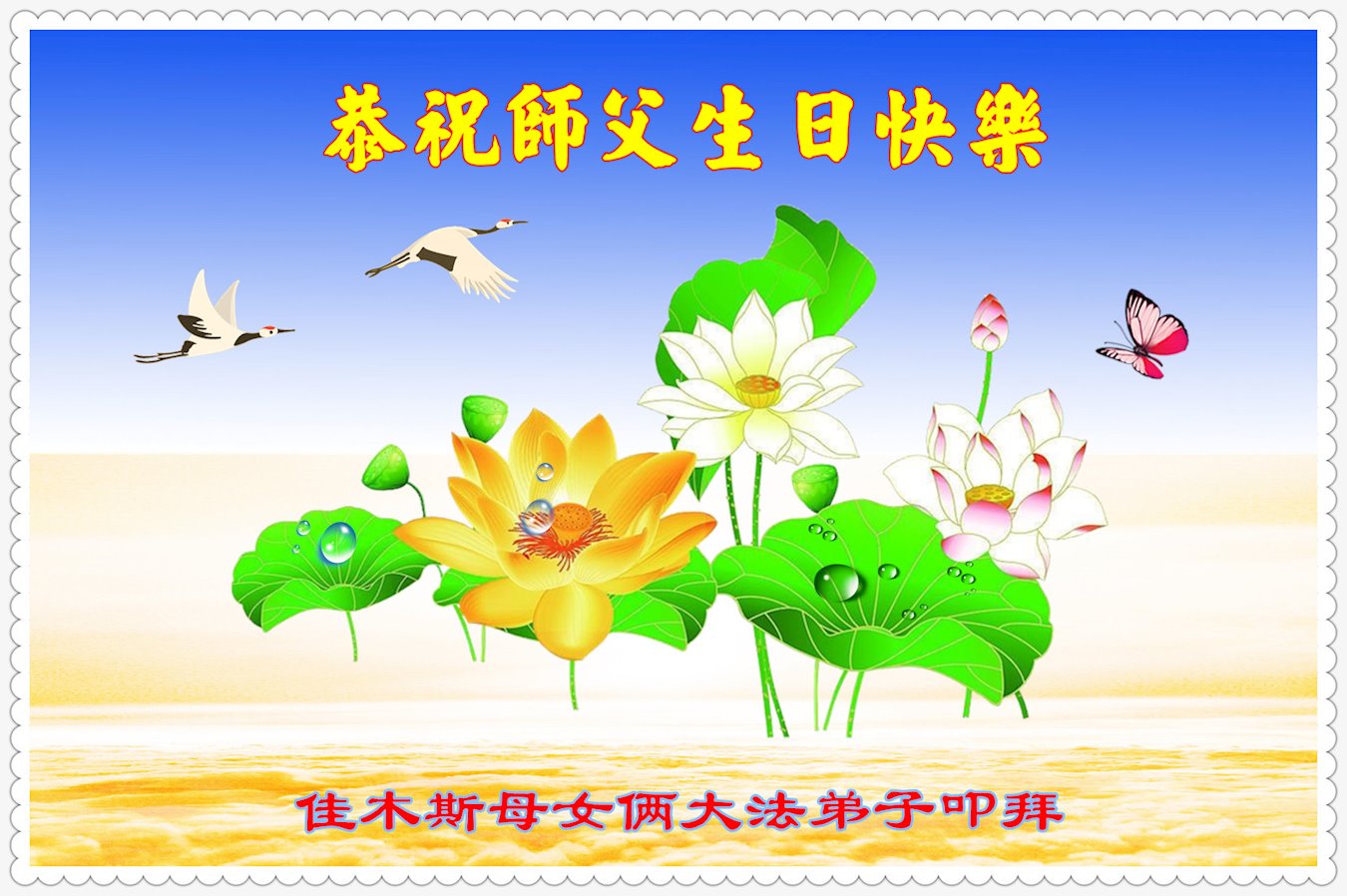 黑龍江佳木斯母女倆大法弟子恭祝師父生日快樂!