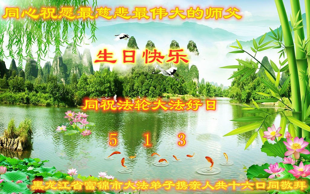 黑龍江省佳木斯市橋南學法組大法弟子恭祝師尊生日快樂!
