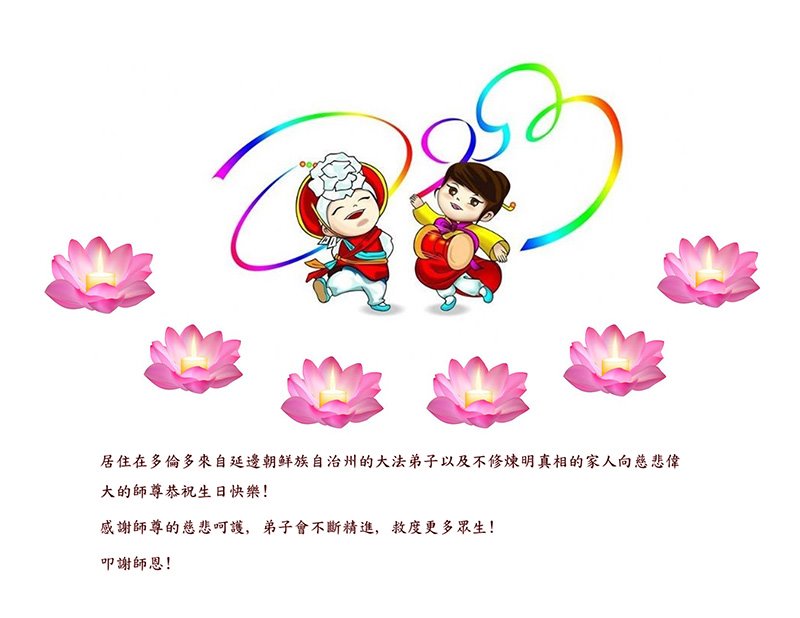 在這普天同慶的日子即將到來之際,弟子恭祝師尊生日快樂!祝賀世界法輪大法日!