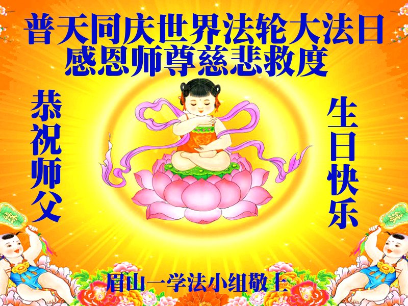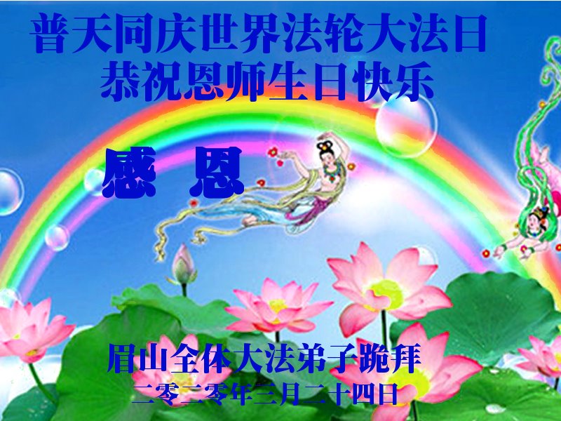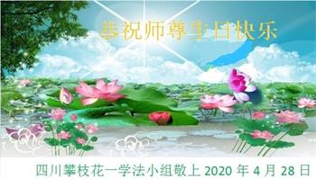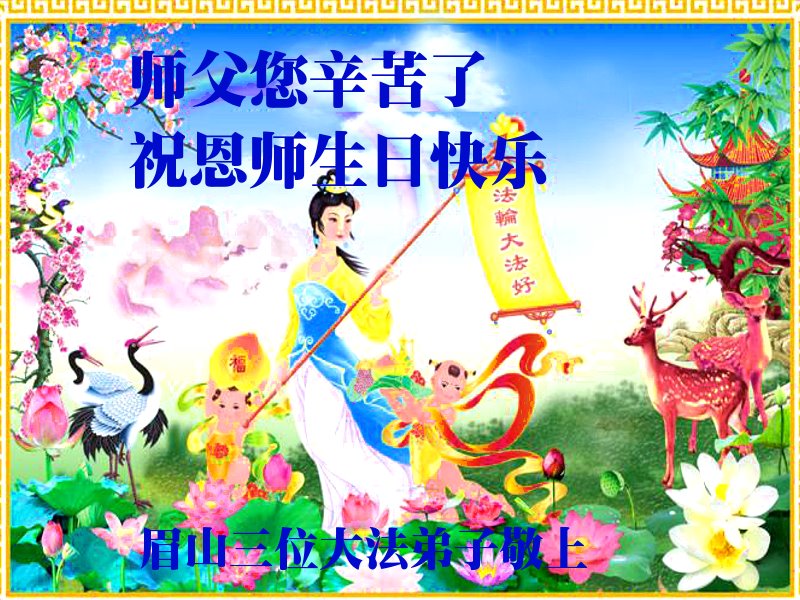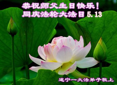 四川遂寧市全體大法弟子恭祝師尊生日快樂!無論今後的路還有多遠,我們一定會形成堅不可摧的整體,聽師尊的話,勇猛精進,修好自己多救眾生,不讓師尊失望。