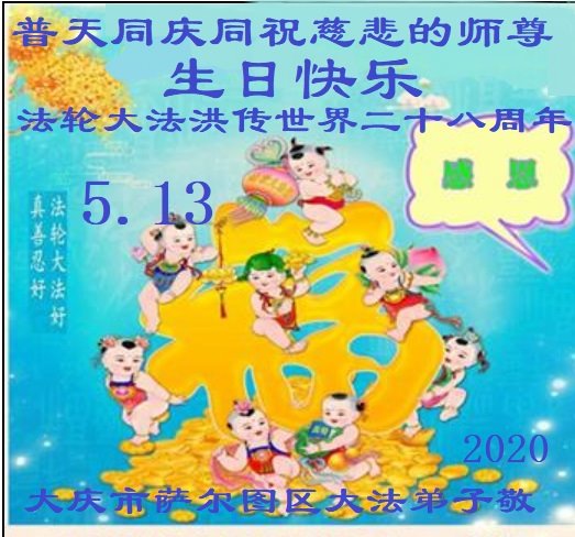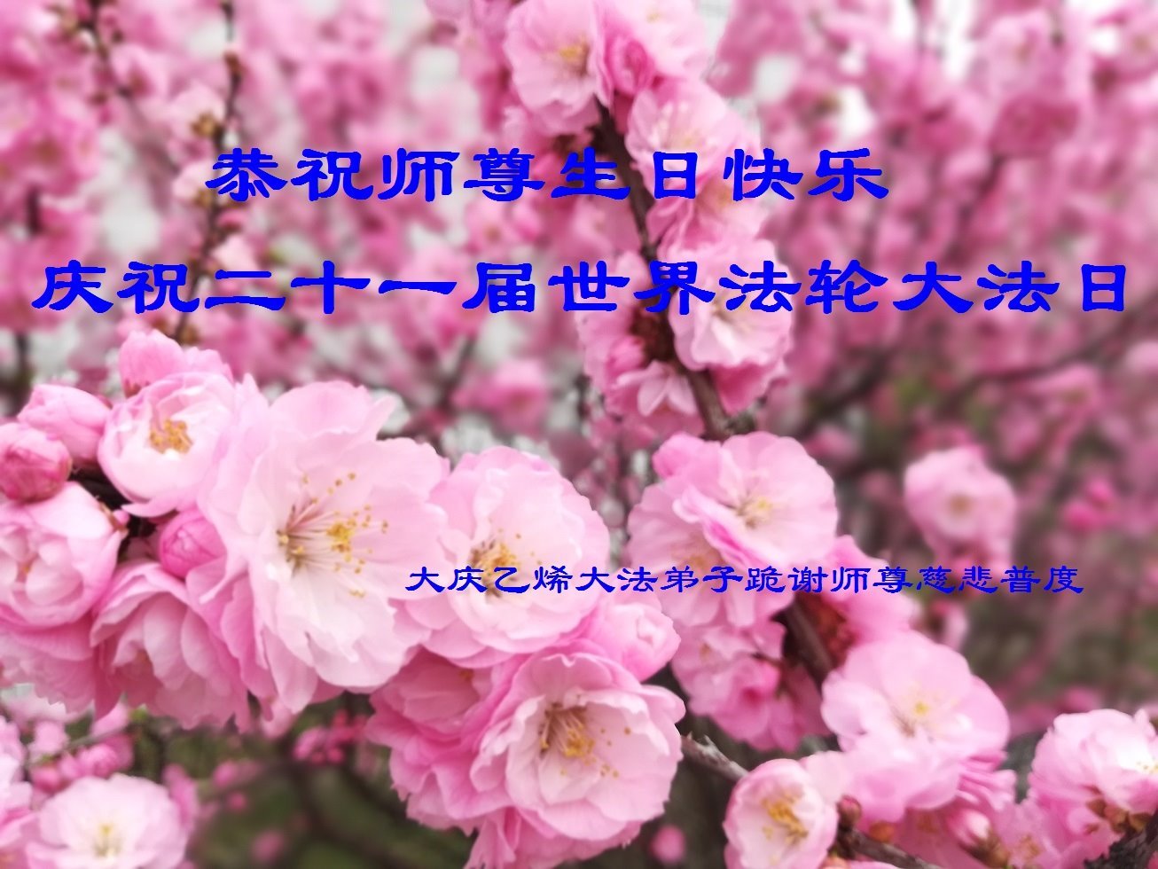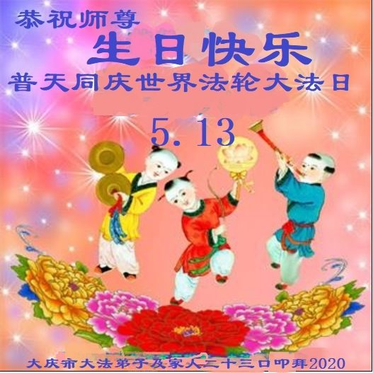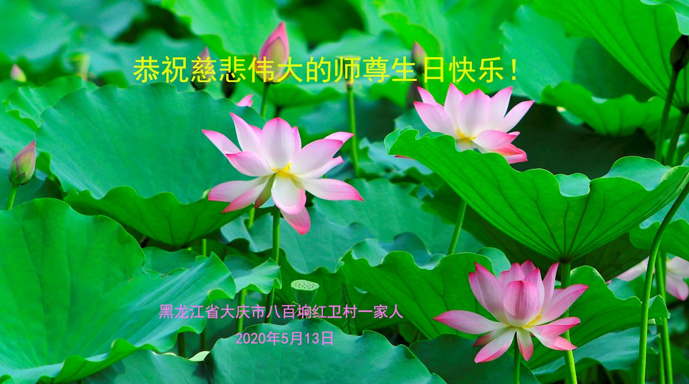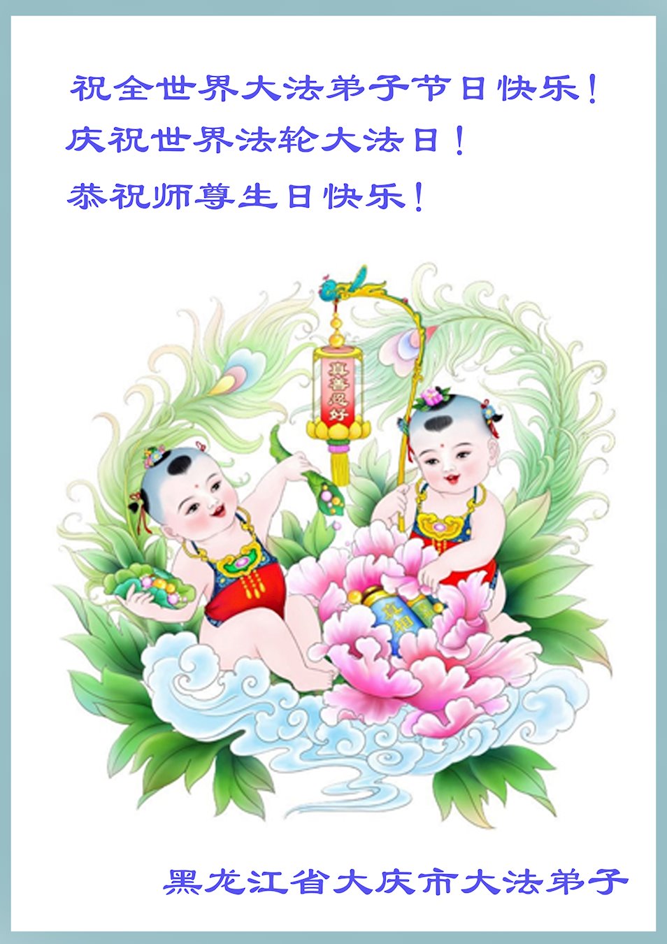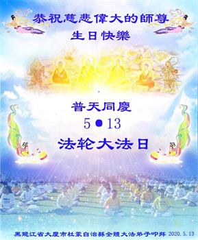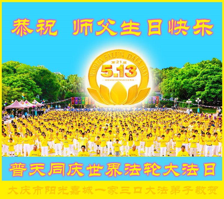 黑龍江省大慶市全家大法弟子恭祝師尊生日快樂!普天同慶世界法輪大法日!