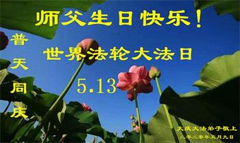 風風雨雨許多年,師父始終一路慈悲保護,慈悲點悟。千言萬語,不知如何表達。五一三世界法輪大法日來臨之際,恭祝慈悲偉大的師尊生日快樂!