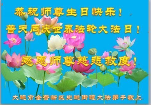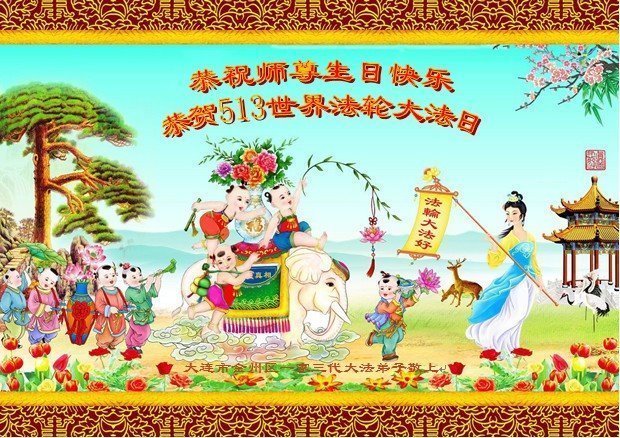 遼寧省大連市大法弟子及家人恭祝師尊生日快樂!慶祝5﹒13世界法輪大法日!