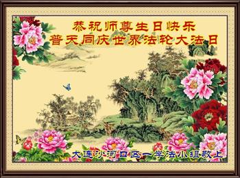 大連沙河口區一學法小組大法弟子恭祝師尊生日快樂!普天同慶世界法輪大法日!在這時間最後的時刻,修好自己,圓容師父所要的,跟師父回家!