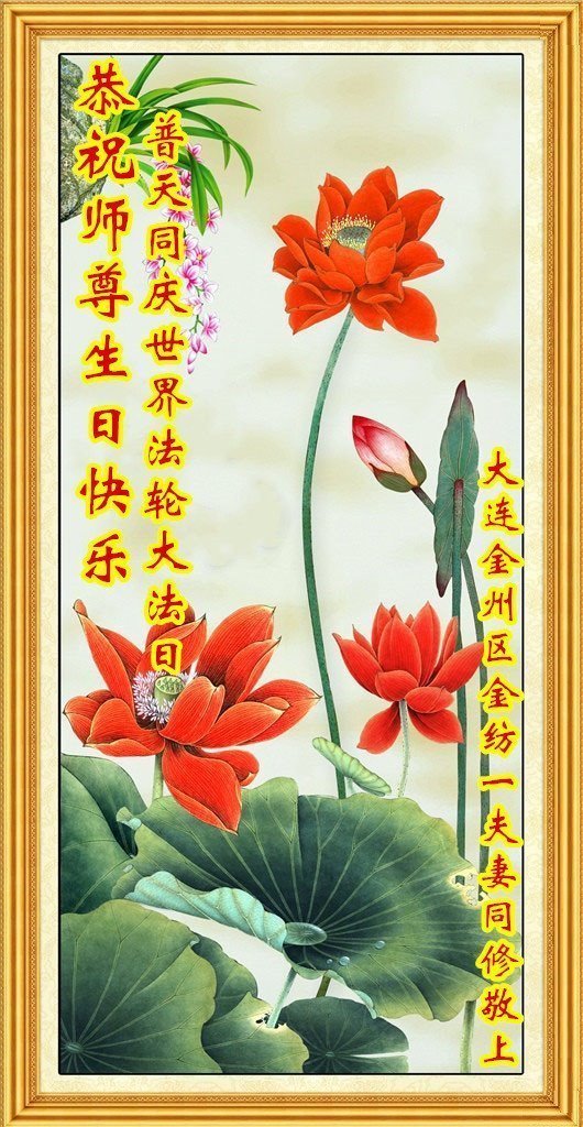 大連金州區金紡一夫妻大法弟子恭祝師尊生日快樂!普天同慶世界法輪大法日!在這時間最後的時刻,修好自己,圓容師父所要的,跟師父回家!