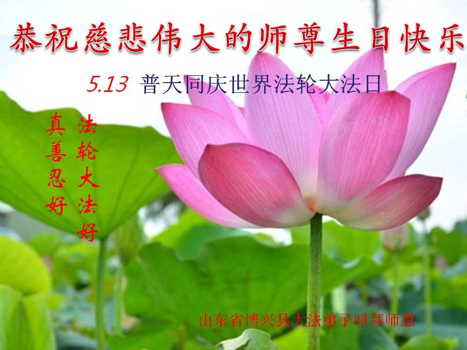 山東省濱州市博興縣大法弟子恭祝師尊生日快樂!普天同慶世界法輪大法日!