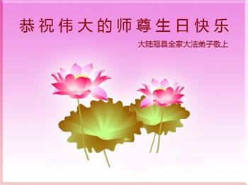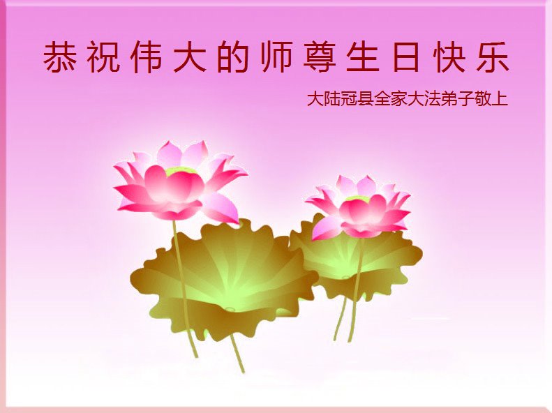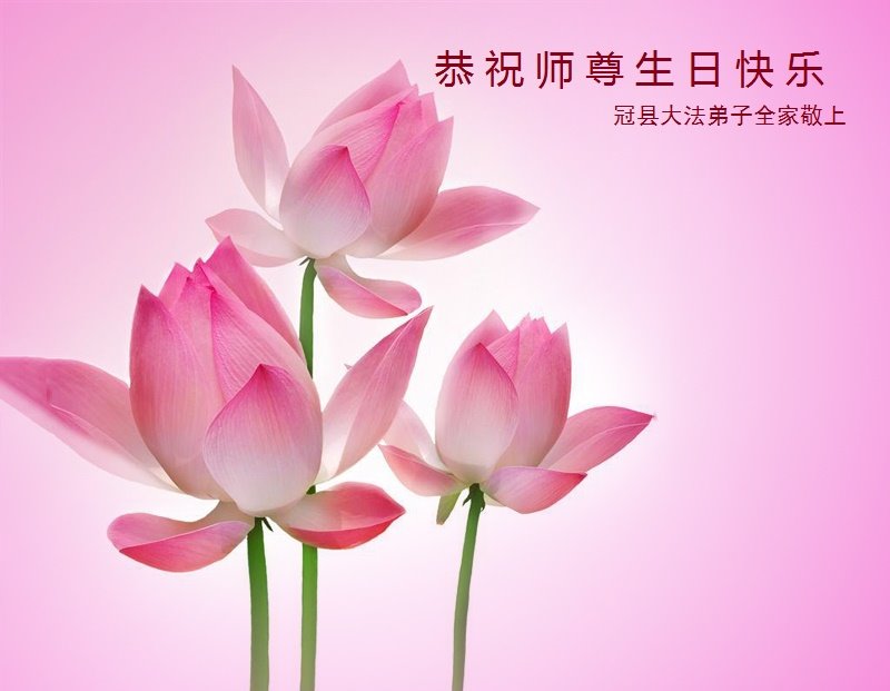 山東省聊城市冠縣大法弟子全家恭祝師尊生日快樂!