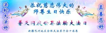 感恩師尊的慈悲救度。迫害雖然還在繼續,我們會牢記師尊教誨,遇事向內找,不斷的提高心性,同化大法,實修自己,來報答師尊的慈悲與救度之恩。