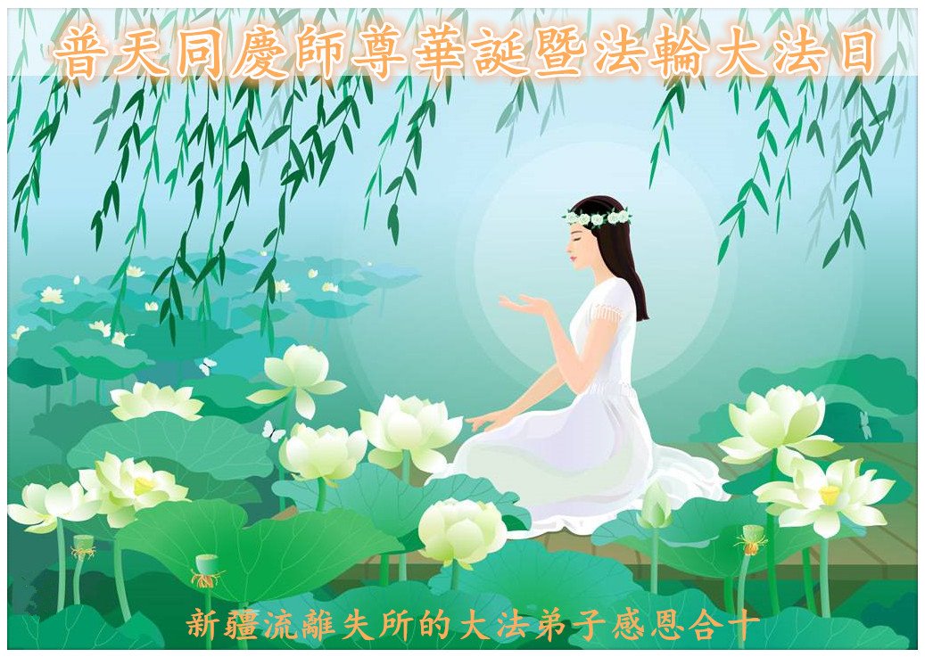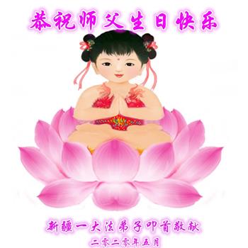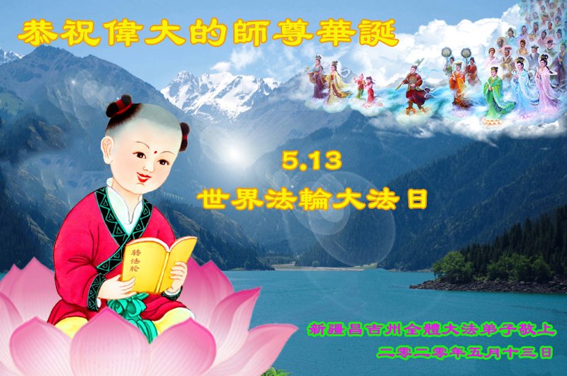 師尊啊!我們窮盡語言也難以表達您對我們的救度之恩!謝謝您!慈悲偉大的師尊!是您慈悲的苦度,使我們這些迷失在常人中的弟子找到了回家的路,知道了助師正法、救度眾生是我們的史前大願;知道了要返本歸真,才能回到我們真正的家園。在您生日和法輪大法日到來之際,在萬眾感恩的聖日裏,恭祝師尊生日快樂!