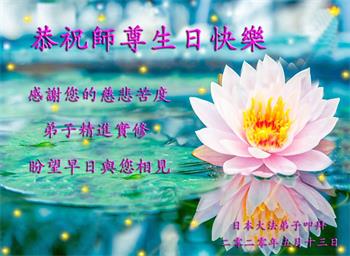 日本大法弟子恭祝慈悲偉大的師父生日快樂!