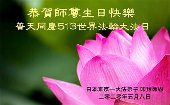 日本東京一大法弟子恭祝師尊生日快樂!普天同慶世界法輪大法日!