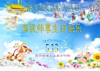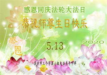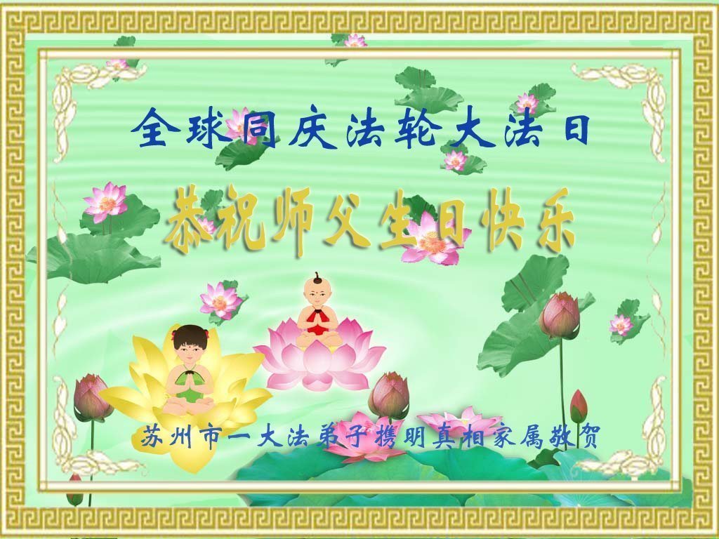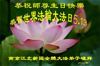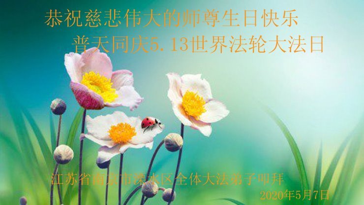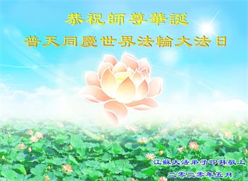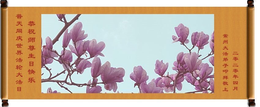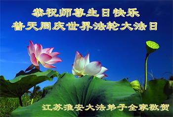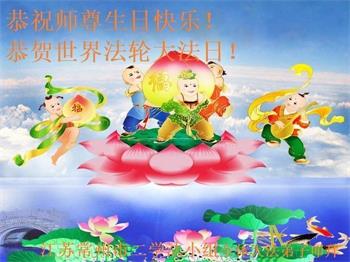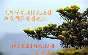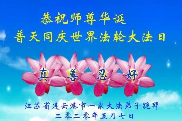 江蘇省連雲港市一家大法弟子恭祝慈悲偉大的師尊生日快樂!恭賀法輪大法洪揚全世界!
