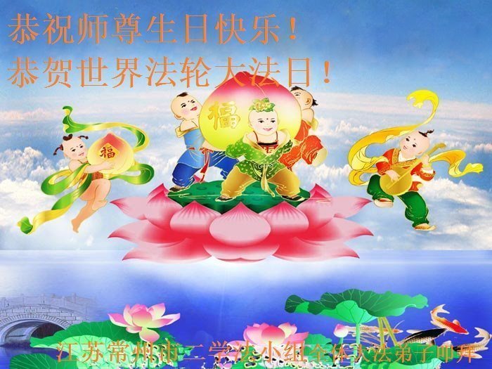 江蘇常州市一個7人學法小組全體大法弟子恭祝師尊生日快樂!恭賀法輪大法日!