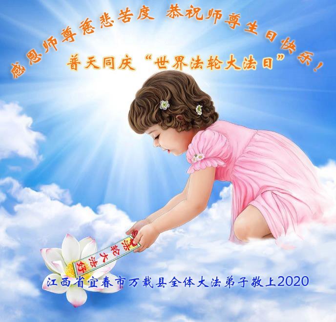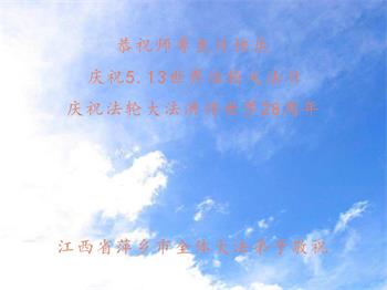 江西一大法弟子恭祝慈悲偉大的師尊生日快樂!恭賀世界法輪大法日!