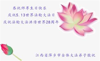 江西省萍鄉市大法弟子恭祝師尊生日快樂!慶祝世界法輪大法日!