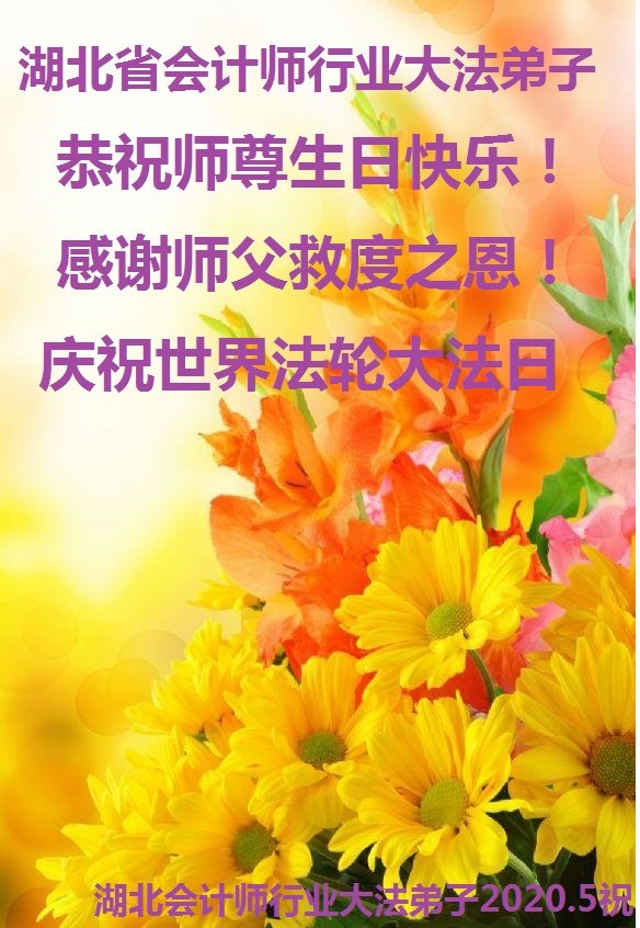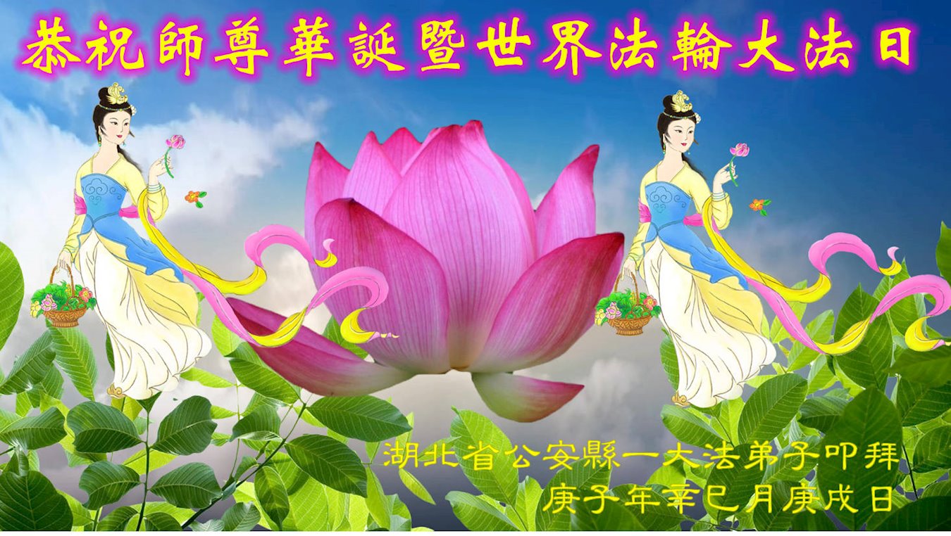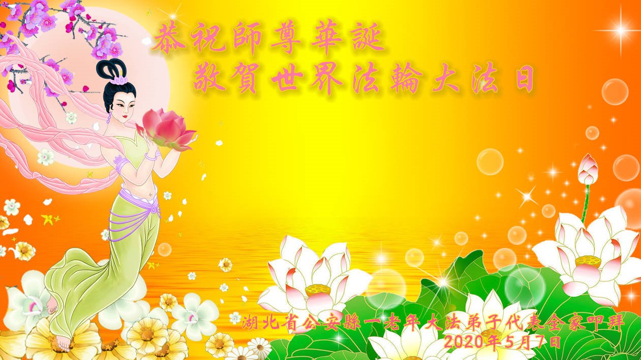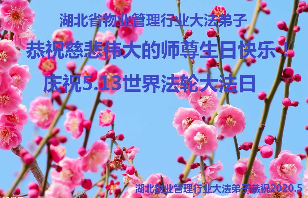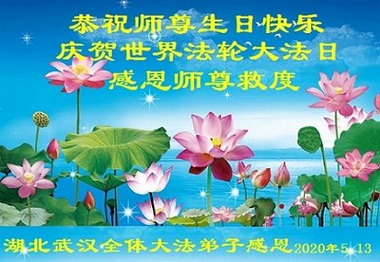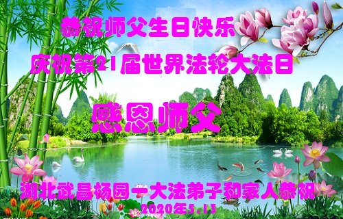 湖北武漢全體大法弟子感恩師尊慈悲救度!恭祝師尊生日快樂!慶賀世界法輪大法日!在劫難真能感受到師尊時刻都在保護著我們每個弟子,才使得弟子們在大疫面前、在劫難中、救度眾生做好師尊安排的三件事中平穩走到今天。