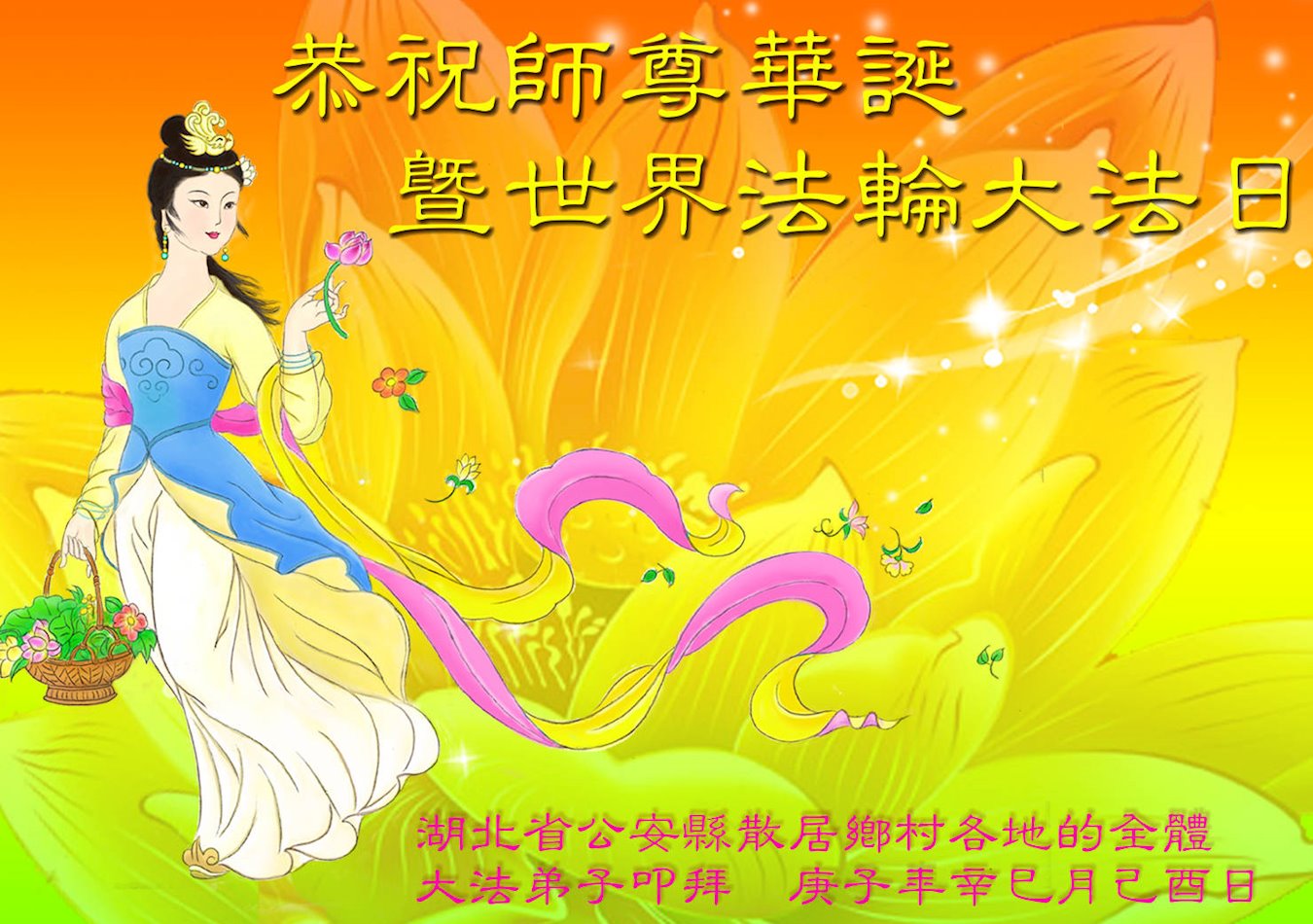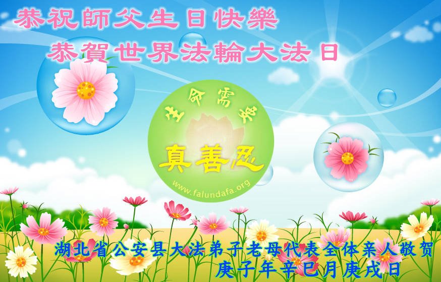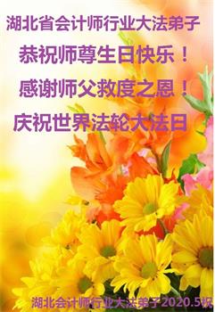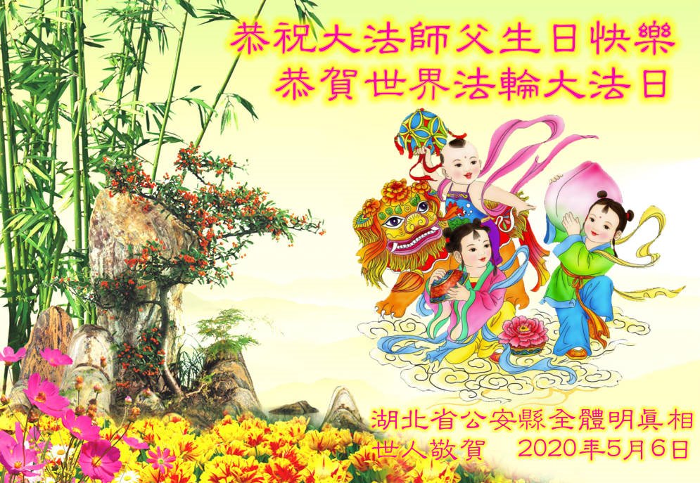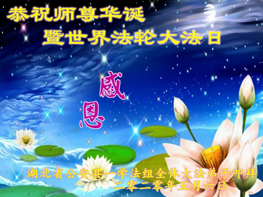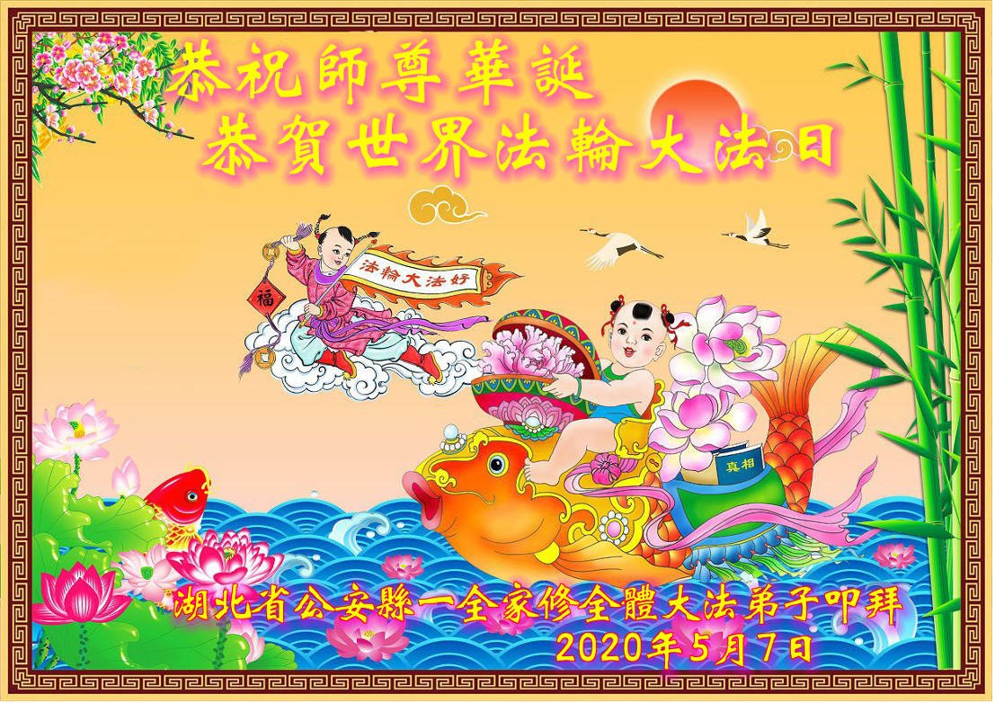 湖北武漢全體大法弟子感恩師尊慈悲救度!恭祝師尊生日快樂!慶賀世界法輪大法日!在劫難真能感受到師尊時刻都在保護著我們每個弟子,才使得弟子們在大疫面前、在劫難中、救度眾生做好師尊安排的三件事中平穩走到今天。