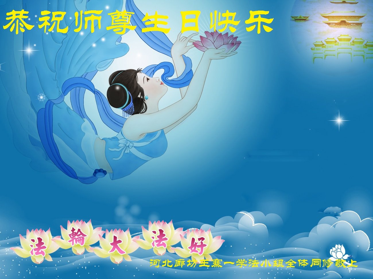 廊坊王寨學法小組全體同修賀師父華誕!