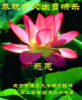 湖北省咸寧市溫泉大法弟子恭祝師父生日快樂!