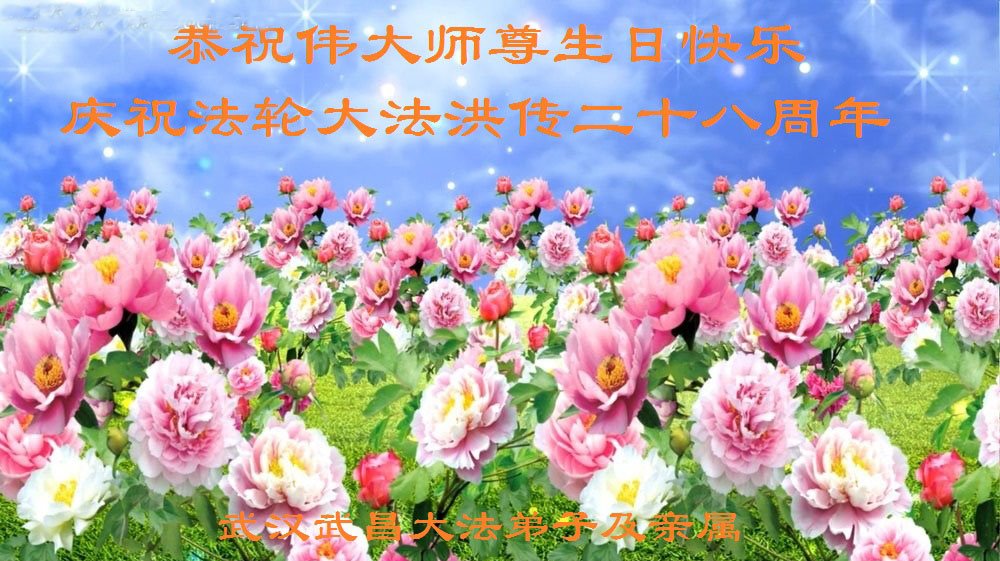 湖北省武漢武昌大法弟子及親屬恭祝偉大的師尊生日快樂!慶祝法輪大法洪傳二十八週年!