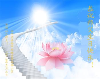 在師父的慈悲保護下!弟子一家人都身心受益。弟子全家恭祝師父生日快樂!恭賀5.13世界法輪大法日!