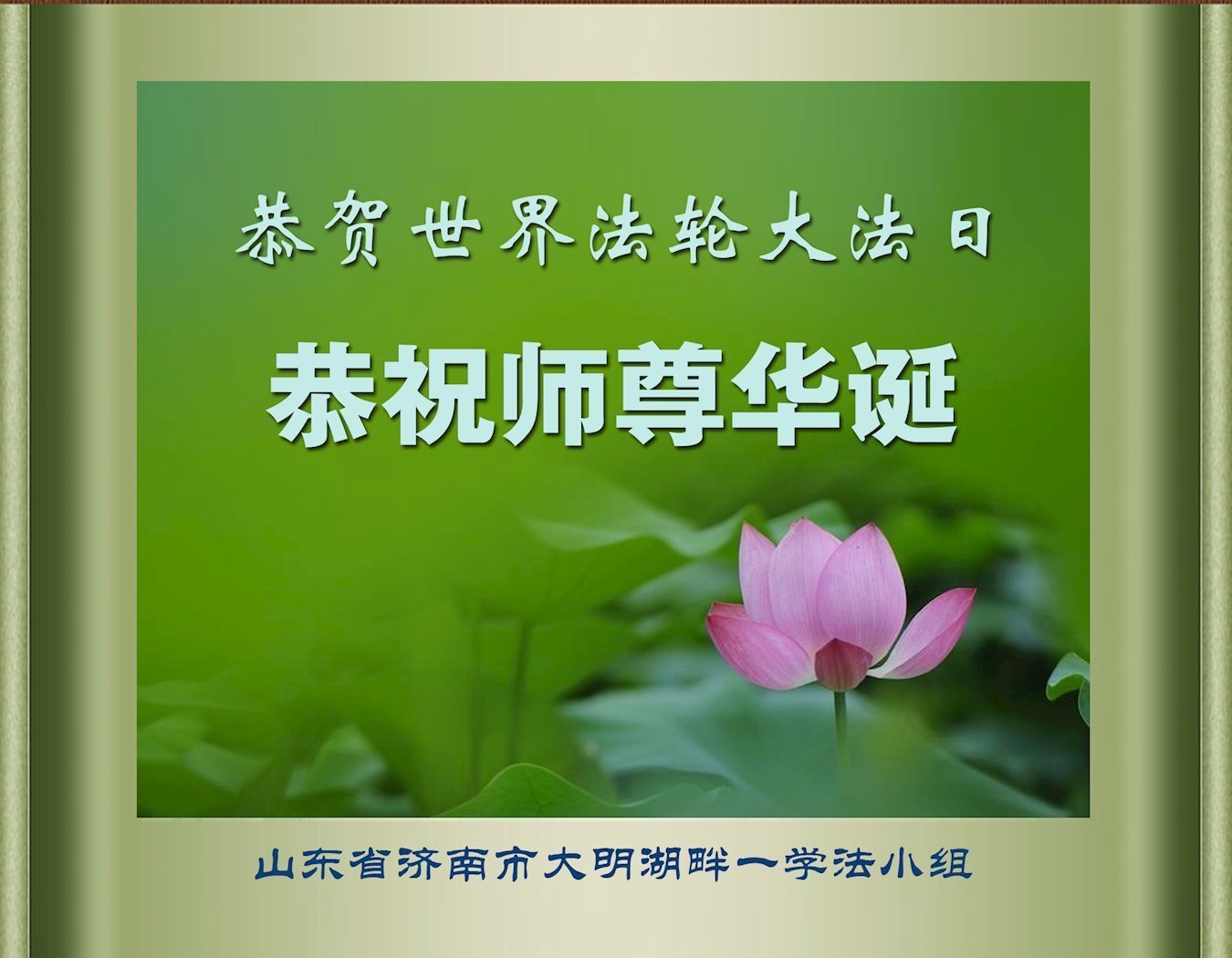 在世界法輪大法日來臨之際,山東省濟南市章丘區全體大法弟子恭祝慈悲偉大的師尊生日快樂!期盼更多的世人能在這場瘟疫中倖存下來,見證法正人間的那一刻!