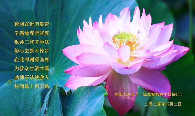 遼寧省瀋陽大法弟子一家恭祝師尊生日快樂!恭賀法輪大法日!
