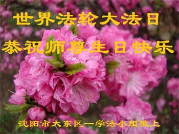 遼寧省瀋陽市一學法小組大法弟子恭祝師父生日快樂!慶賀世界法輪大法日!