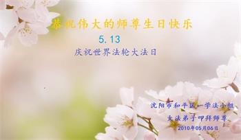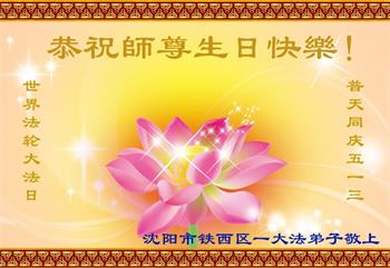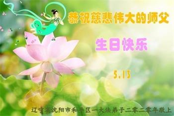 遼寧省瀋陽一母子大法弟子恭祝師尊生日快樂!