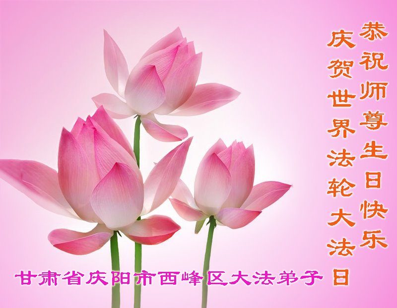 甘肅省慶陽市西峰區全體大法弟子恭祝師尊生日快樂!慶賀世界法輪在法日!