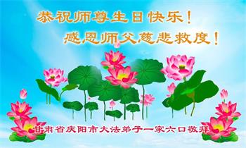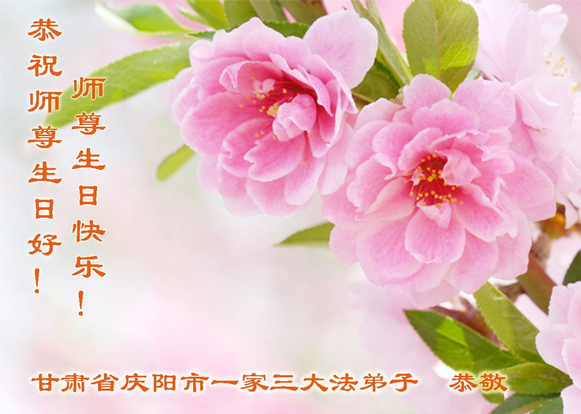 甘肅省慶陽市一家三大法弟子恭祝師尊生日好!師父生日快樂!