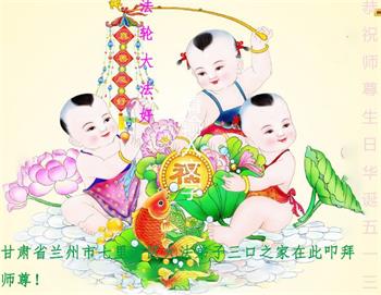 甘肅省蘭州市七里河區大法弟子三口之家恭賀法輪大法日!