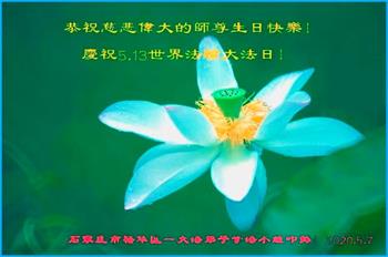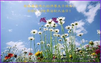 借此機會,弟子們衷心恭祝師父生日快樂!珍惜最後的時光,講清真相、救度眾生,一如既往的完成師父賦予大法弟子神聖的救度眾生的使命。