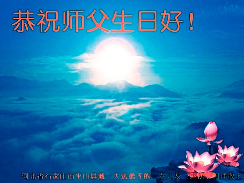 在法輪大法弘傳二十八週年第二十一屆5.13世界法輪大法日即將來臨之際,河北省石家莊市平山縣城一大法弟子的一女兒及一外甥女懷著無盡感恩的心情恭祝師父生日好!慶祝第二十一屆5.13世界法輪大法日!無盡感恩師父的慈悲救度。
