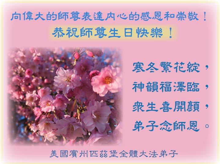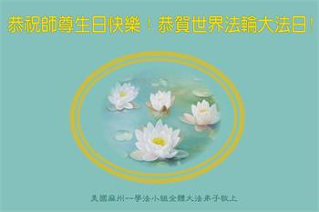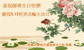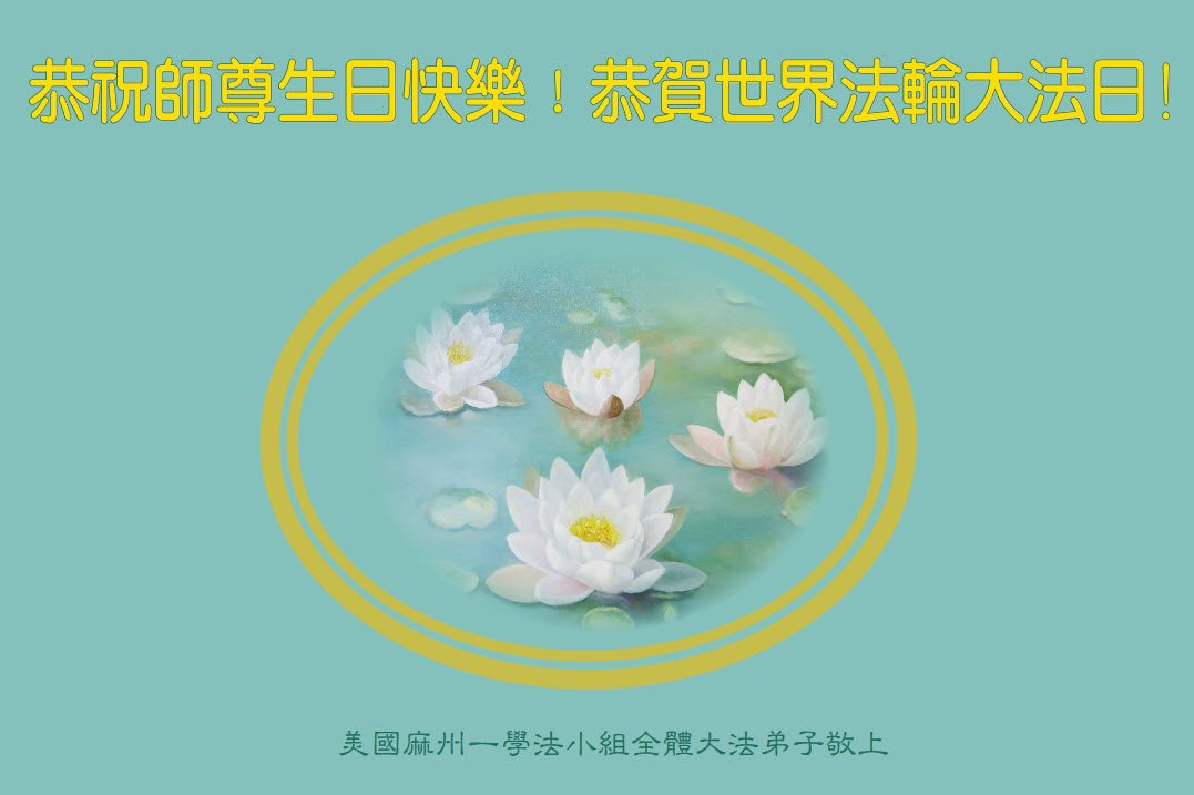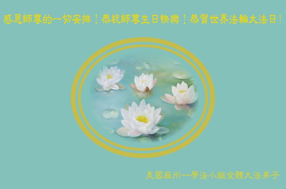 美國麻州一學法小組全體大法弟子感恩師父的一切安排和給予!恭祝慈悲偉大的師尊生日快樂!恭賀世界法輪大法日!